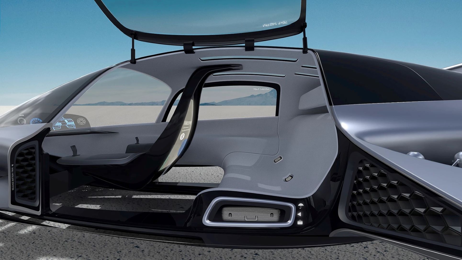 Gull-wing doors provide access to an airy cabin with seating for three adults including the pilot. Until fully autonomous tech is mature, the company believes that an experienced human pilot should be on board for added safety and security. Easy-to-learn semi-autonomous controls are said to simplify flying.