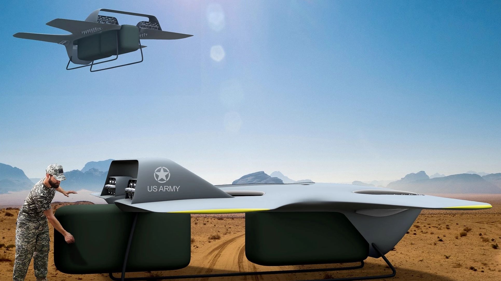 - UEV Lynx cargo drone compared to Humvee.