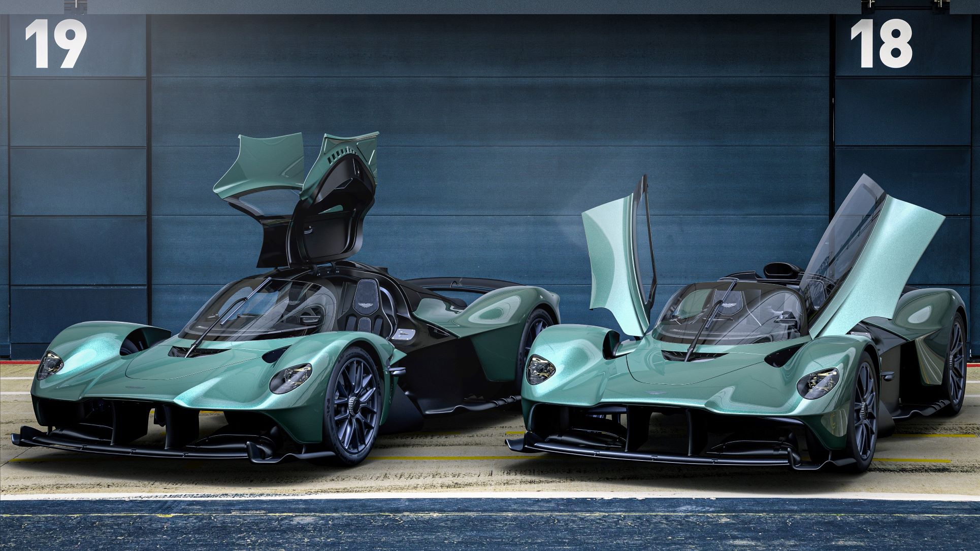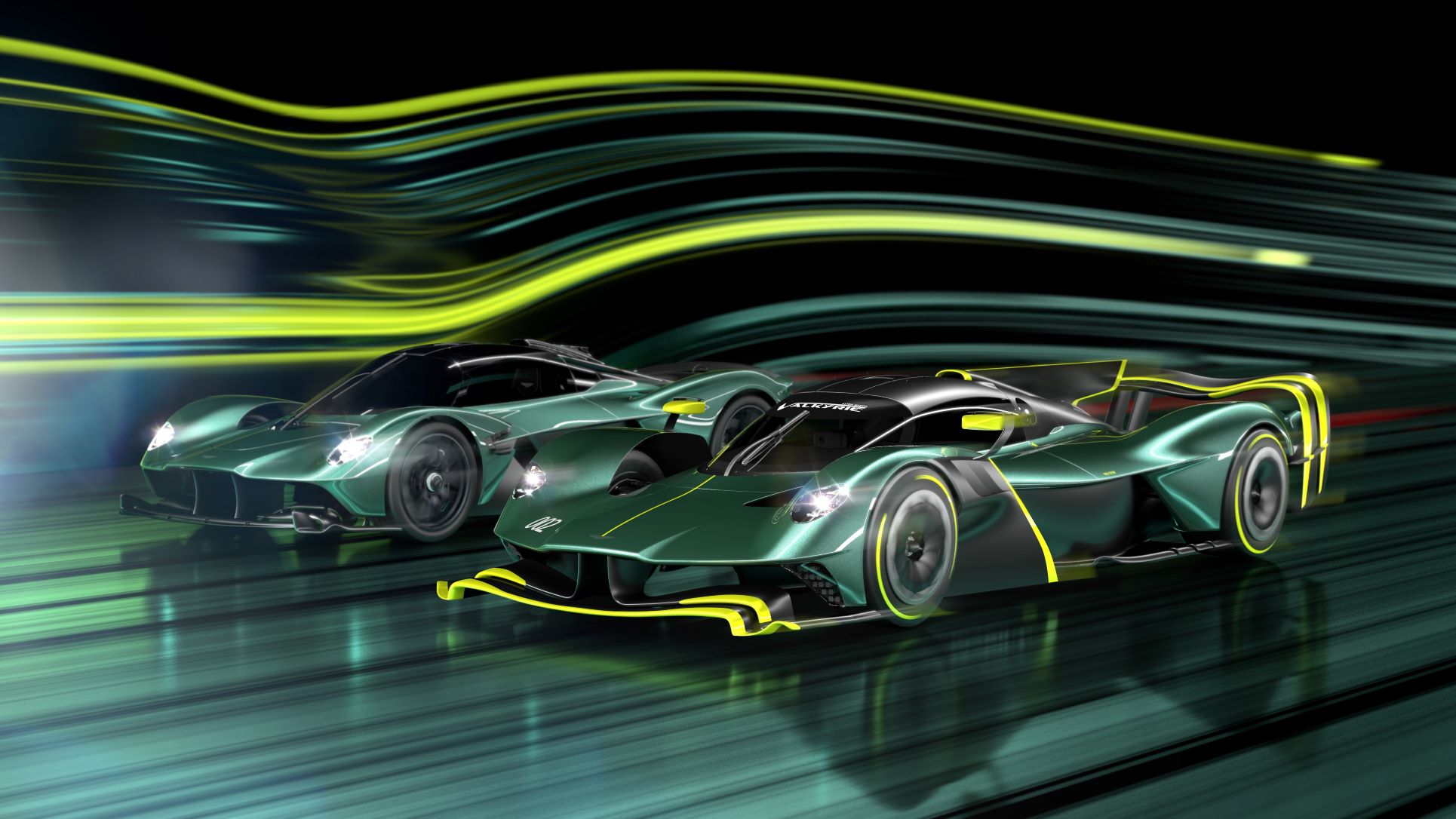 - Aston Martin Valkyrie (left) with AMR Pro racecar.