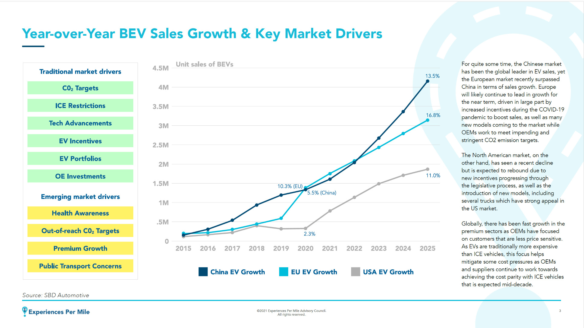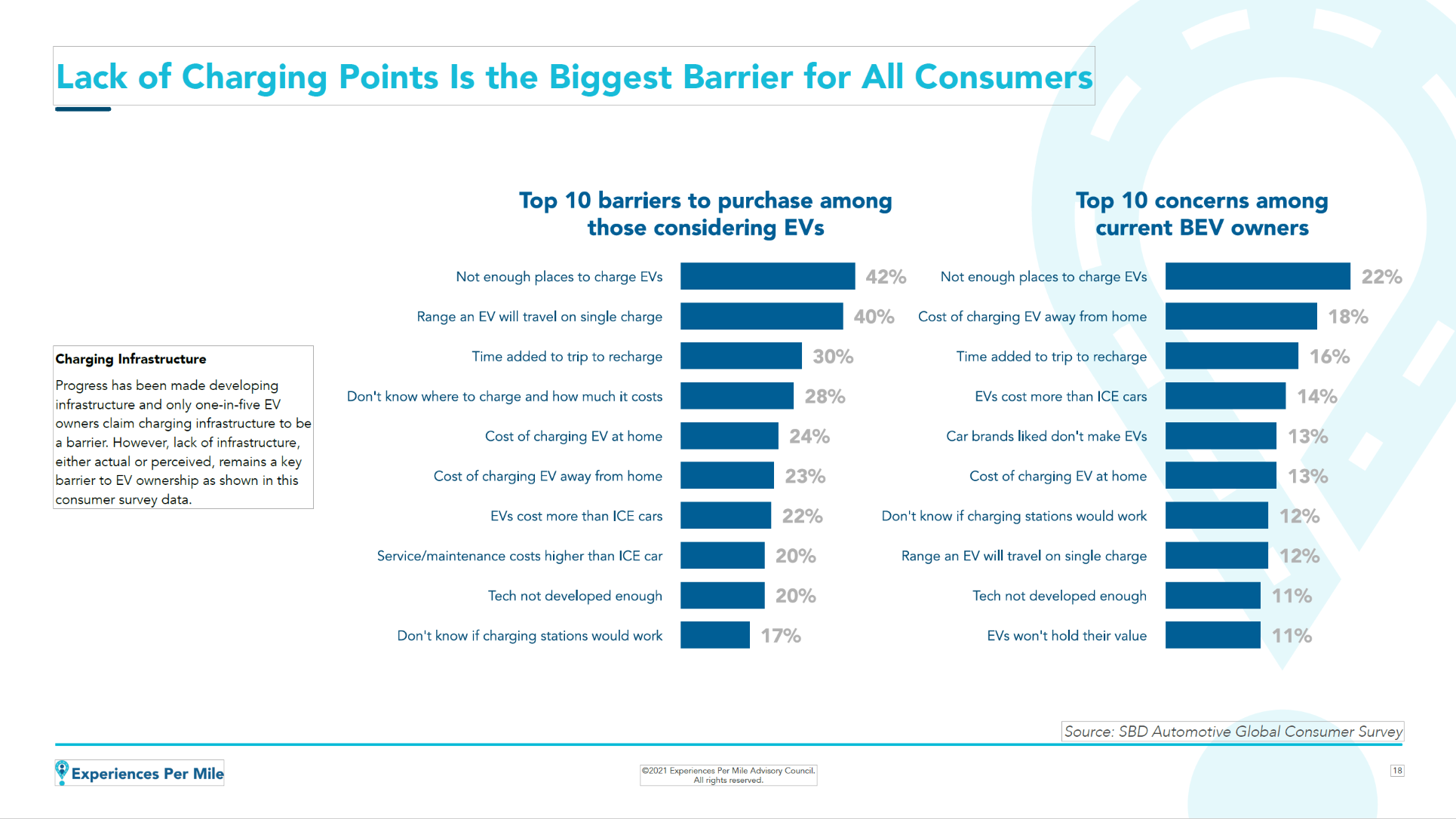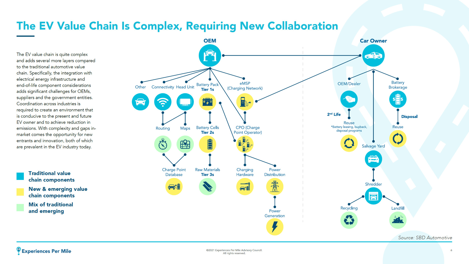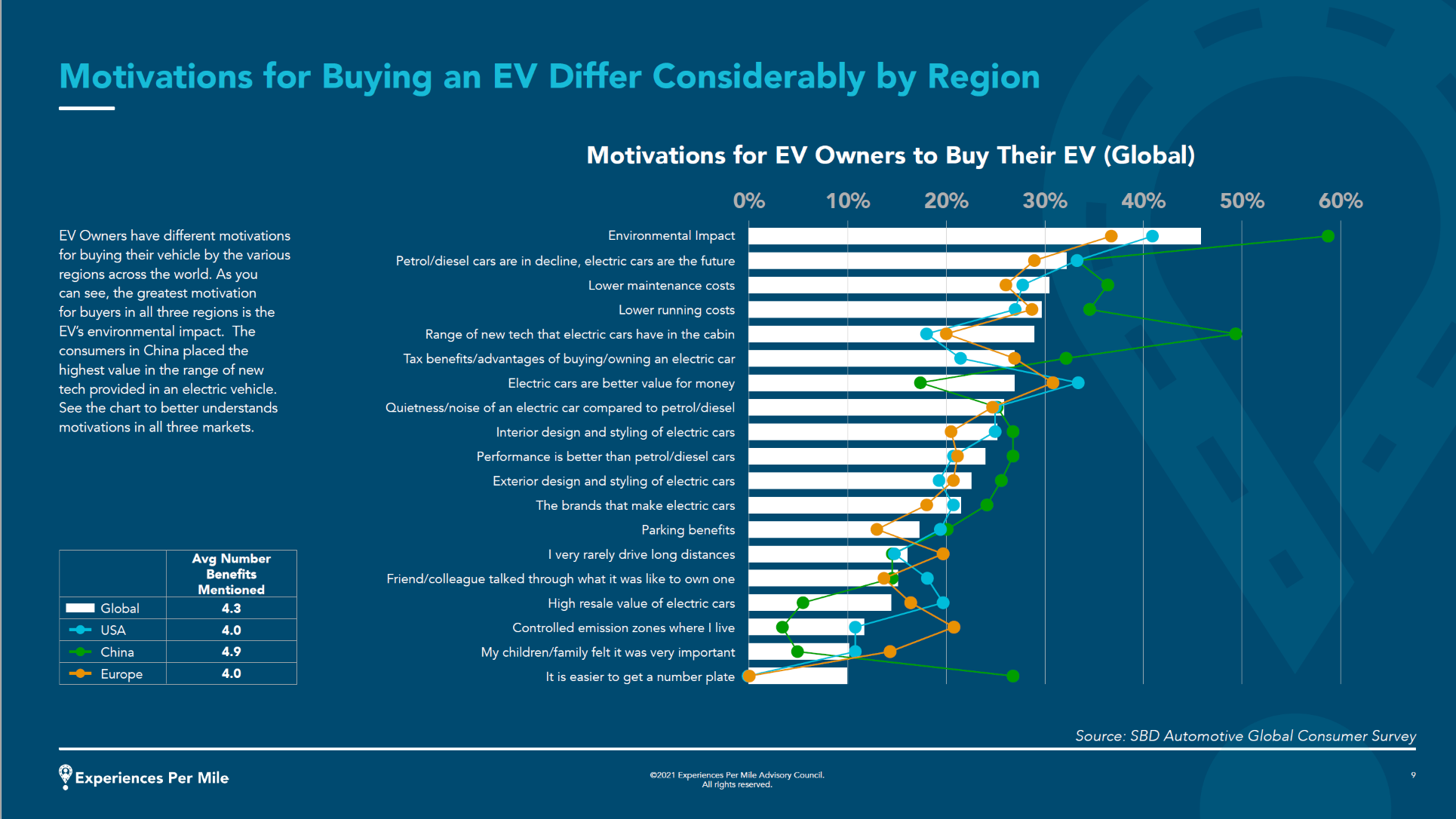 In summary, Experiences Per Mile are different for EV owners compared to ICE owners, requiring new considerations, industry collaboration, and EV-centric design to support consumers as they make the transition to electric vehicles. It is no longer a question of if, but when, will the mass adoption of EVs affect your business, the report’s authors say.