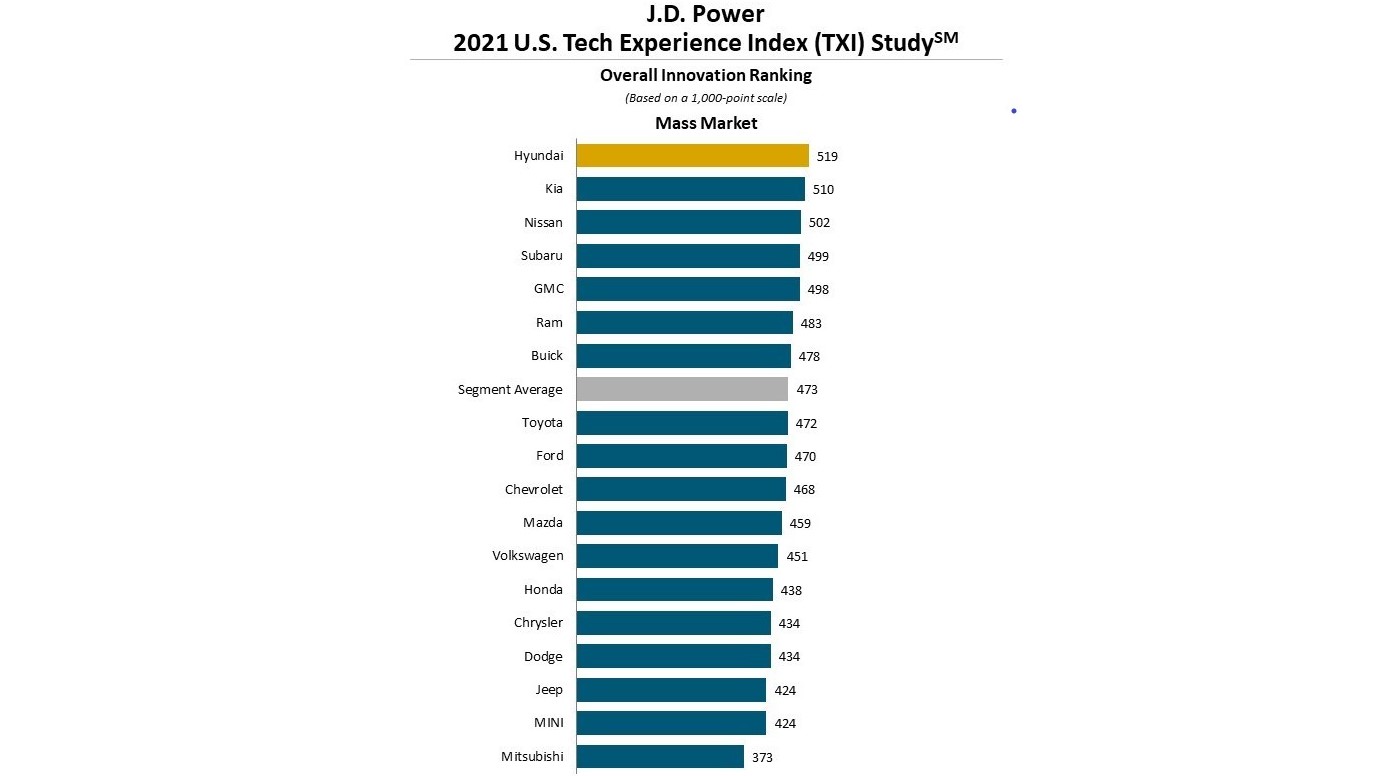 - J.D. Power 2021 U.S. Tech Experience Index (TXI) Study – Overall Innovation Ranking – Premium.