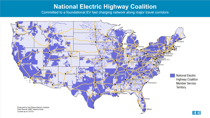 - U.S. National Electric Highway Coalition members and service territory map.