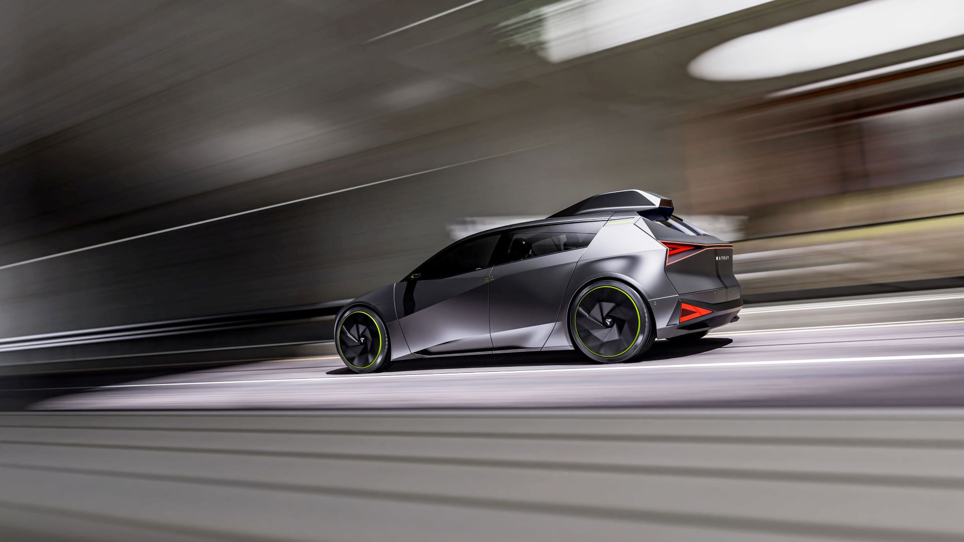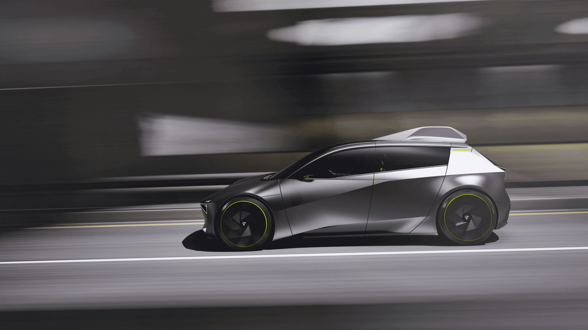While a concept, the car has been engineered and designed to be developed into a production reality with an estimated range of 600 km (373 mi). Though shorter than a typical compact SUV, it is said to be far larger inside. Key exterior dimensions are a 4416-mm (173.9-in) length, 2880-mm (113.4-in) wheelbase, 2023-mm (79.6-in) width (excluding rear cameras), and 1583-mm (62.3-in) height (including the Shrimp).