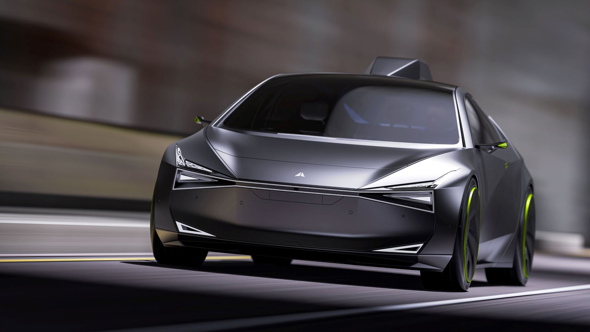 The single-rear-seat “throne” 2+1 seating arrangement has the front seats pushed apart to provide all three occupants with a clear view of holographic displays. To accommodate ride-hailing applications, all of the car’s glazing is engineered around True AR technology.