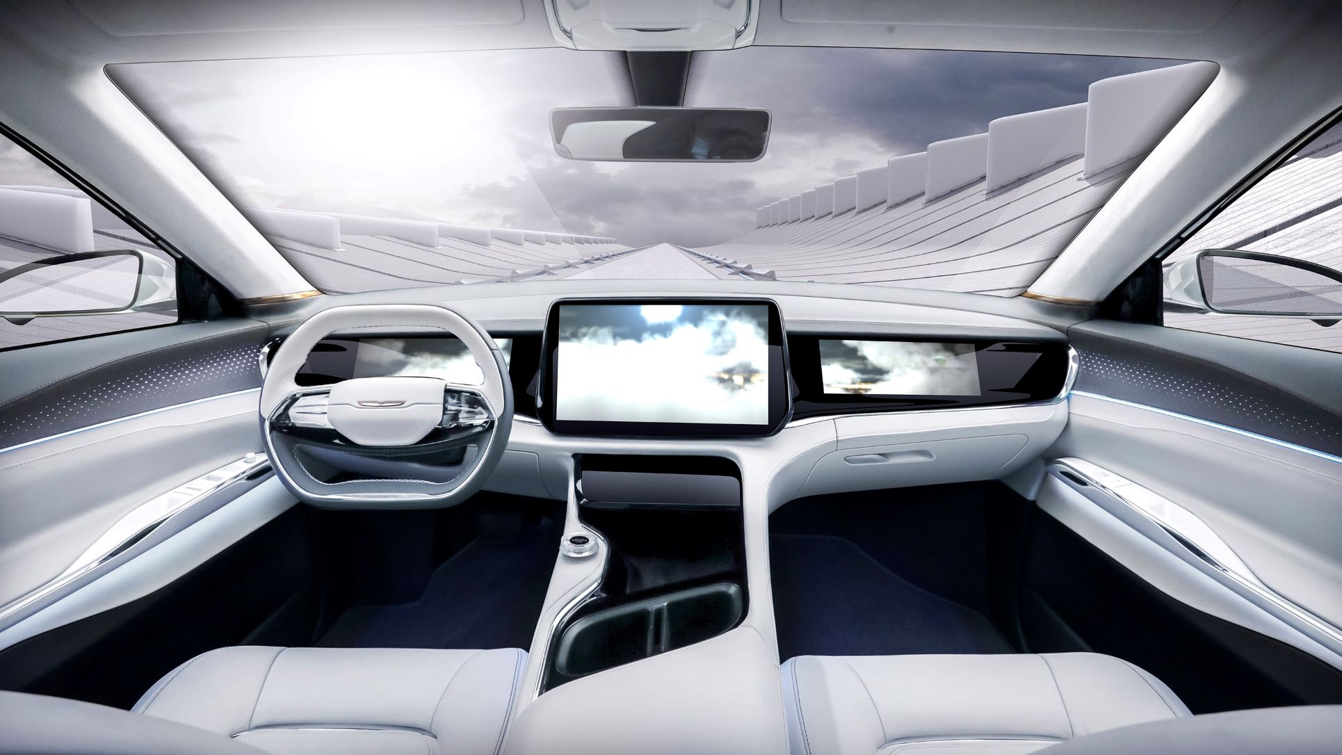 Customization was a high priority when user-experience engineers designed the concept’s interior. Using a menu-based format, screens throughout the Airflow interior can be personalized, simplified, and grouped based on individuals and interests. Information on the screens can be shared with all passengers by swiping.