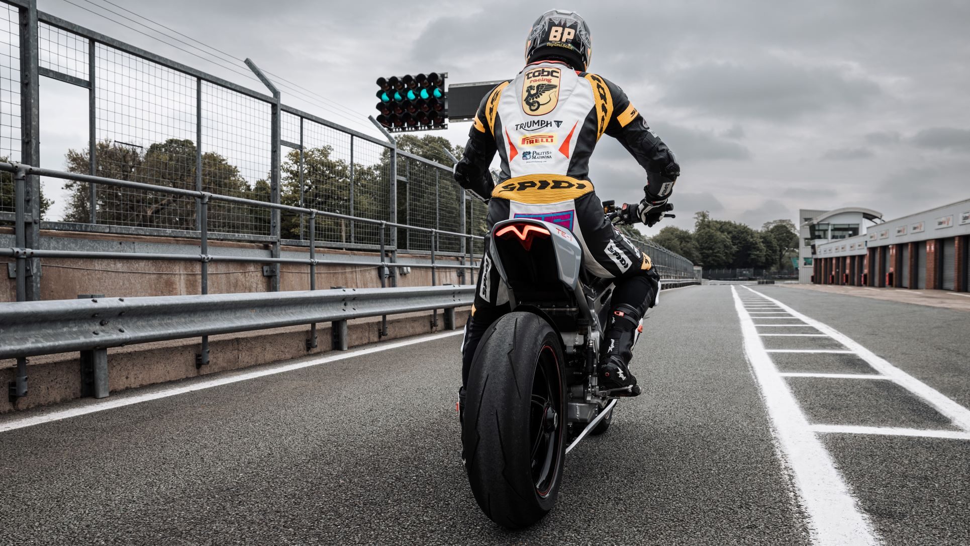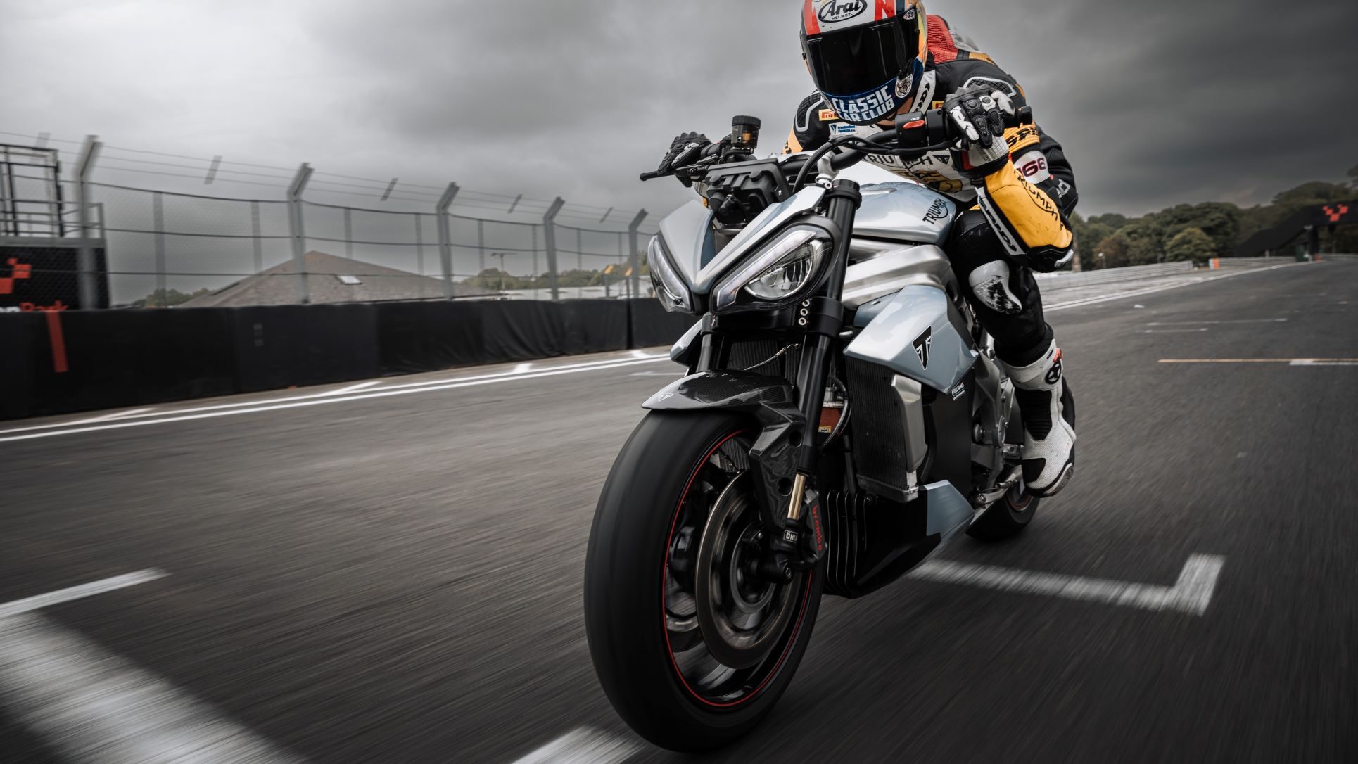 - Triumph TE-1 electric prototype on track.