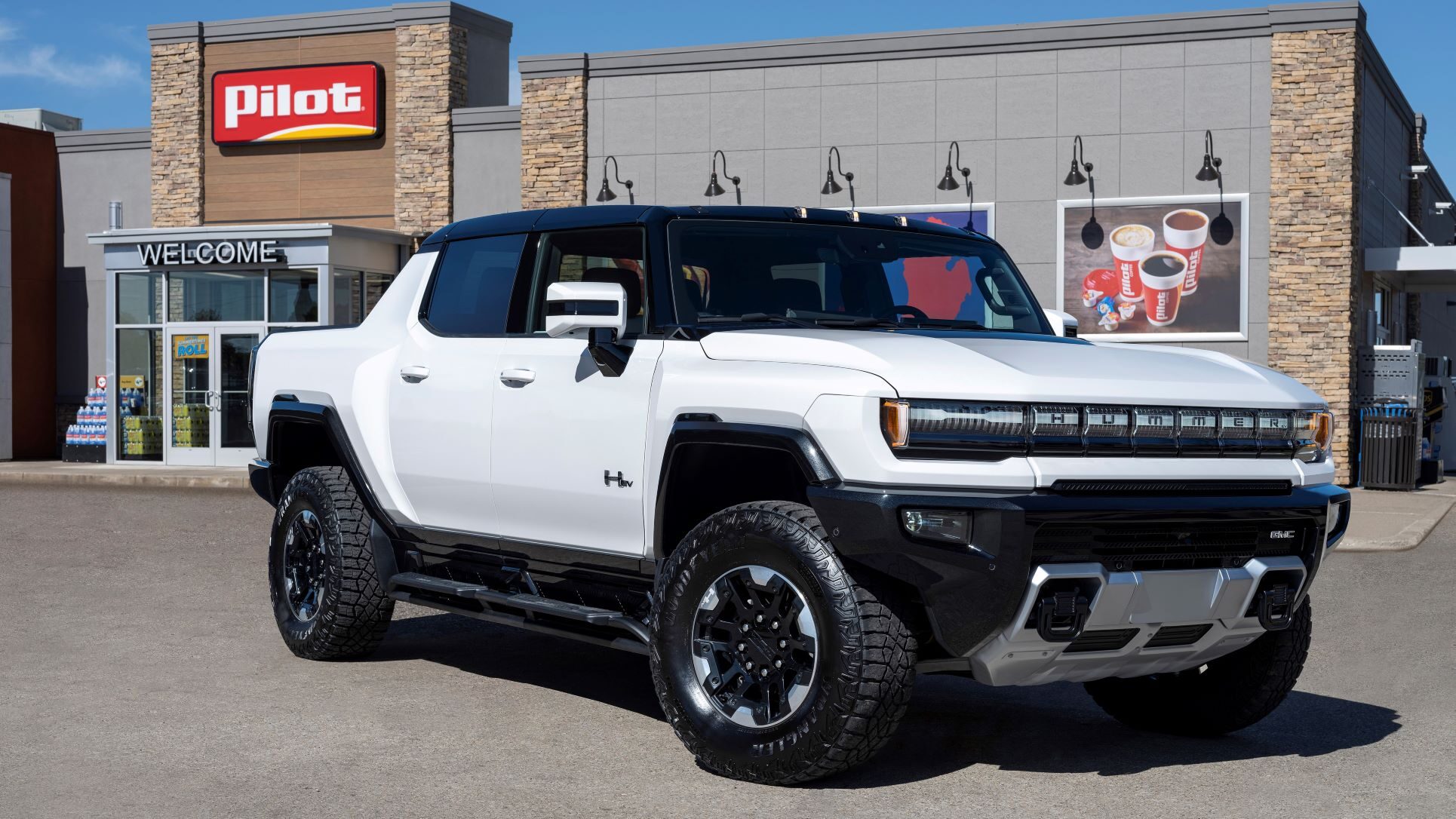 - GM and Pilot Flying J are collaboratng on fast charging. GMC Hummer EV pickup shown.