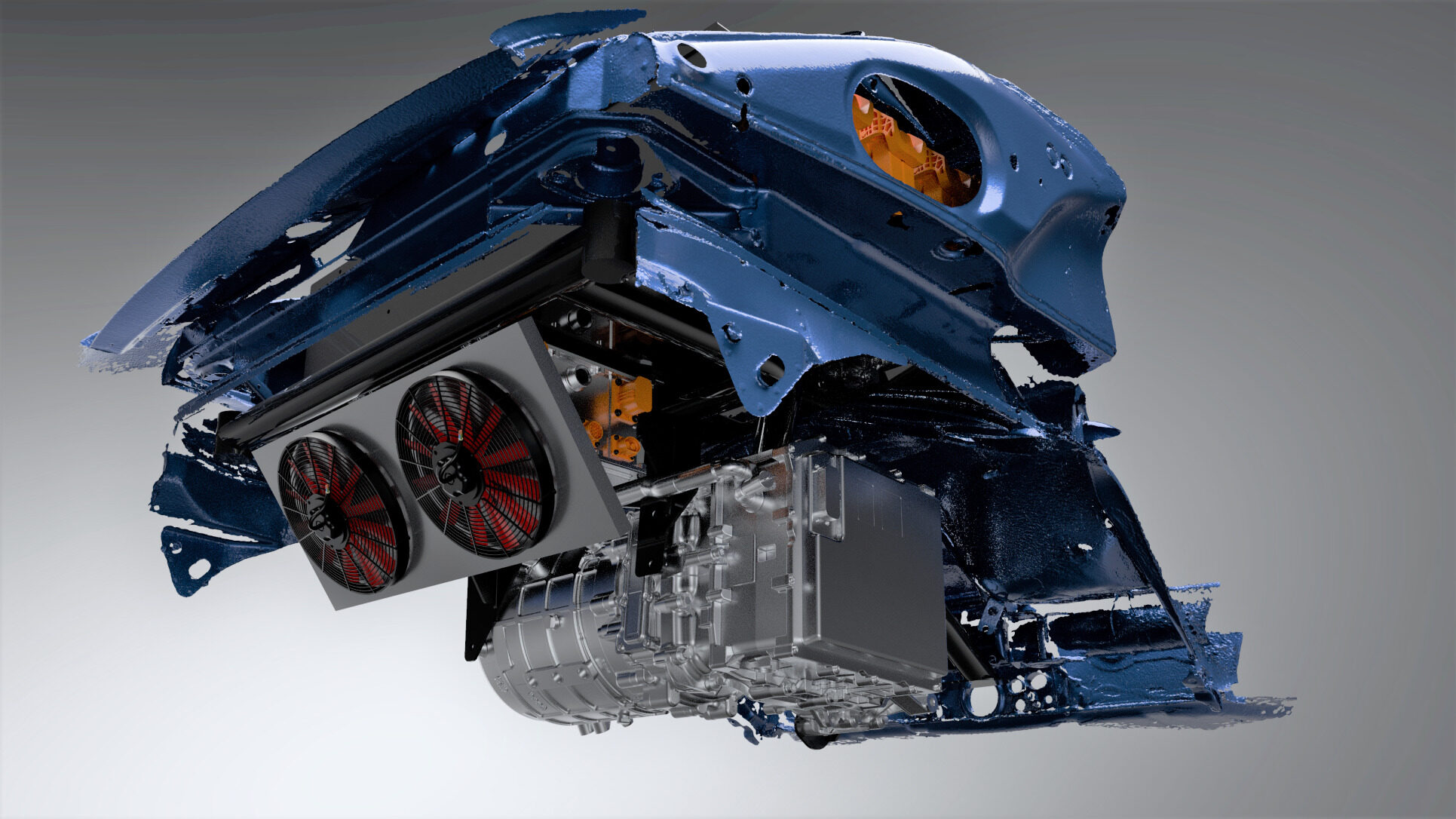Two variants of the 911 drop-in kit are offered compatible with G-body and 964 911s. The E62 and high-performance E62s both packing 62-kW·h batteries replacing the fuel tank and within the engine bay delivering 200+ mi of range in real-world driving. The E62 features a 160-kW motor enabling the car to hit 60 mph in under 5 s. The E62s features a more potent 240-kW motor for 0-60 mph in just 3.8 s, with acceleration sustained “deep into triple-digit speeds.”