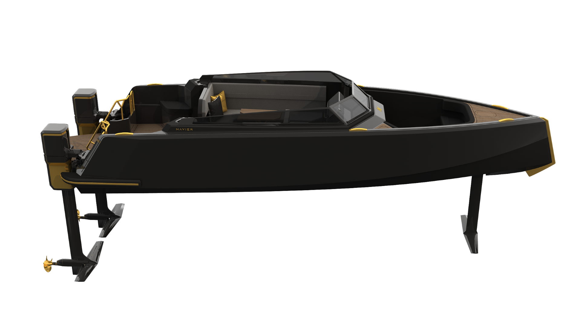 Navier makes some bold claims for the boat. Among them are that the N30 is the world’s longest range 100% electric boat; the boat is ten times more efficient than traditional gasoline boats thanks to its electric hydrofoiling technology; and it is the first electric boat with compelling range, utility, and luxury combined.